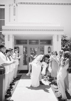 With the sound of the waves and the salty breeze in the air, this couple said "I do" in the most stunning setting—right on the beach, facing the endless blue of the Pacific. Surrounded by their closest family and friends, their ceremony was filled with love, laughter, and the beauty of Hawaii’s shores. Every moment, from heartfelt vows to golden-hour portraits by the water, was pure magic.